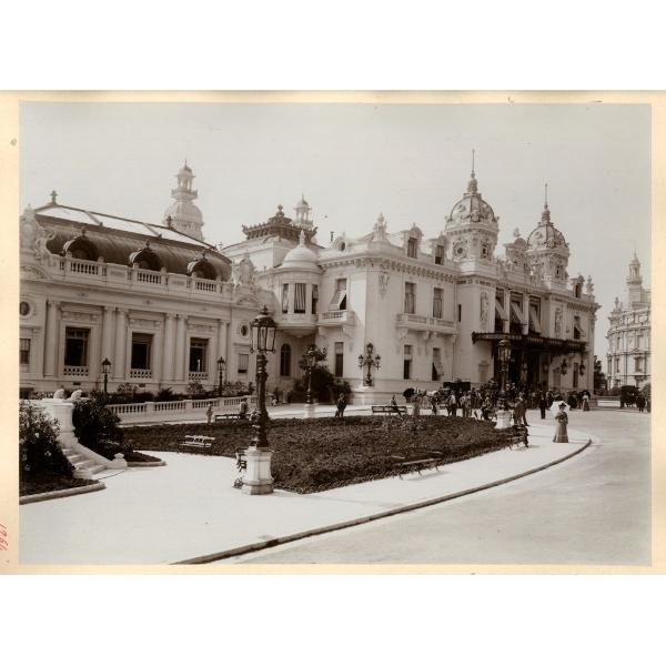 MONTECARLO - IL CASINO. MONTECARLO, CASINO', VEDUTA DEL PROSPETTO PRINCIPALE DALLA PIAZZA CON ESCURSIONISTI IN POSA
