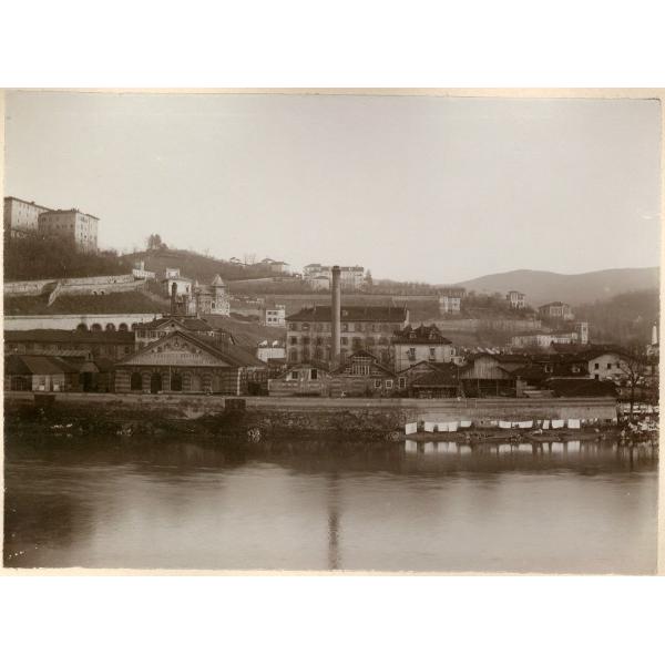CASE DEL RUBATTO. TORINO/ BORGO DEL RUBATTO, VEDUTA GENERALE DALLA SPONDA SINISTRA DEL FIUME CON GLI EDIFICI DELLA DITTA FRATELLI DIATTO/ COSTRUZIONE DI MATERIALE MOBILE PER FERROVIE E TRAMWAYS
