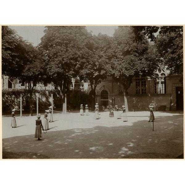 LAWN TENNIS. TORINO/ REGIA SCUOLA NAZIONALE DI EDUCAZIONE FISICA, CLASSE DI ALLIEVE IN CORTILE DURANTE UNA PARTITA DI PALLA A CORDA