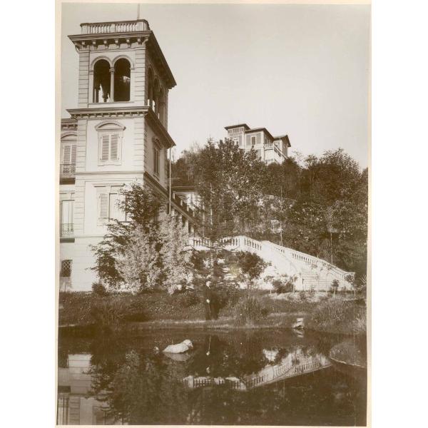 VILLA CHAPUIS - AL RUBATTO -TORINO. TORINO/ VILLA CHAPUIS, PIAZZA CRIMEA, VEDUTA DELLA TORRETA ANGOLARE DAL LAGHETTO DEL GIARDINO