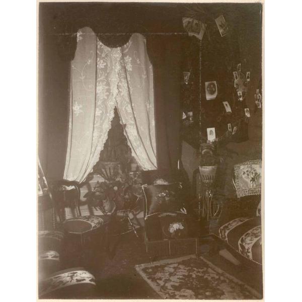 A LUCE DI MAGNESIO (FILO POSE DI 2', E 1'TORINO?, INTERNO DI CASA GABINIO? RIPRESO AL LAMPO DI MAGNESIO CON UN SALOTTINO CON NUMEROSI RITRATTI FOTOGRAFICI ALLE PARETI
