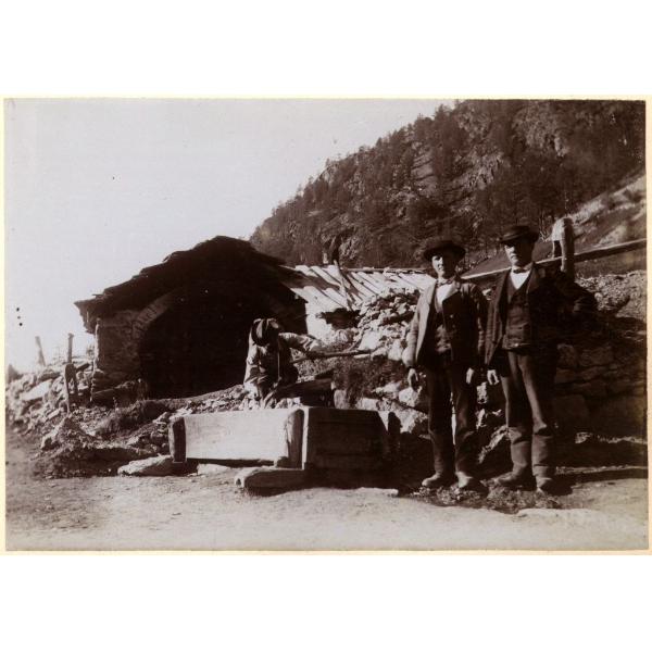 A BIONAZ. VALLE DI AOSTA/ VALPELLINE, BIONAZ, TRE UOMINI PRESSO UNA FONTANA