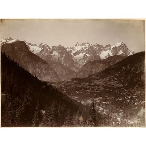 GABINIO MARIO, M.BIANCO - DA PRESSO VILLENEUVE. VALLE DI AOSTA/ PANORAMA DELLA VALLE VERSO NORD OVEST COL MONTE BIANCO SULLO SFONDO E LA DORA BALTEA IN PRIMO PIANO