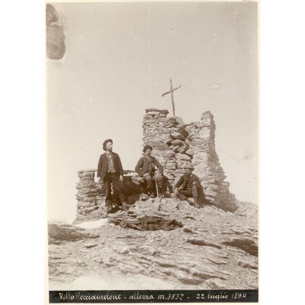 VETTA ROCCIAMELONE - ALTEZZA M.3537 - 22 LUGLIO 1894. VALLI DI LANZO, TRE ALPINISTI NEI PRESSI DEL CIPPO SULLA VETTA DEL ROCCIAMELONE