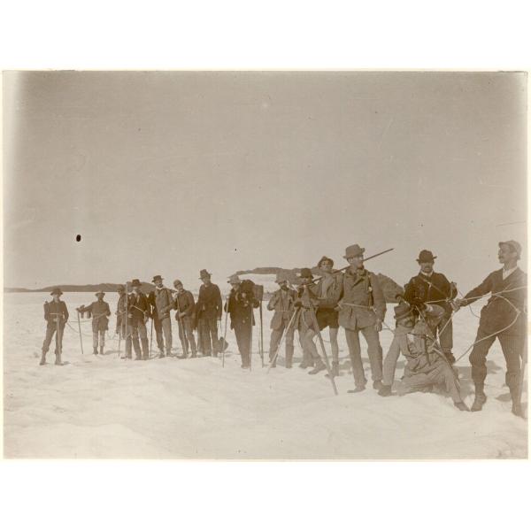 SUL GHIACCIAIO DEL ROCCIAMELONE.VVALLI DI LANZO, GRUPPO DI ALPINISTI, TRA CUI GABINIO (IV DA DESTRA), SUL GHIACCIAIO DEL ROCCIAMELONE
