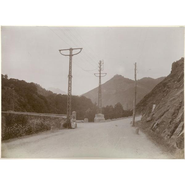 BIVIO STRADE PER VIU' E CERES. VALLI DI LANZO, STRADA PER CERES ALL'INCROCIO CON LA STRADA PER LA VALLE DI VIU', CON DUE DONNE SEDUTE PRESSO IL PONTE