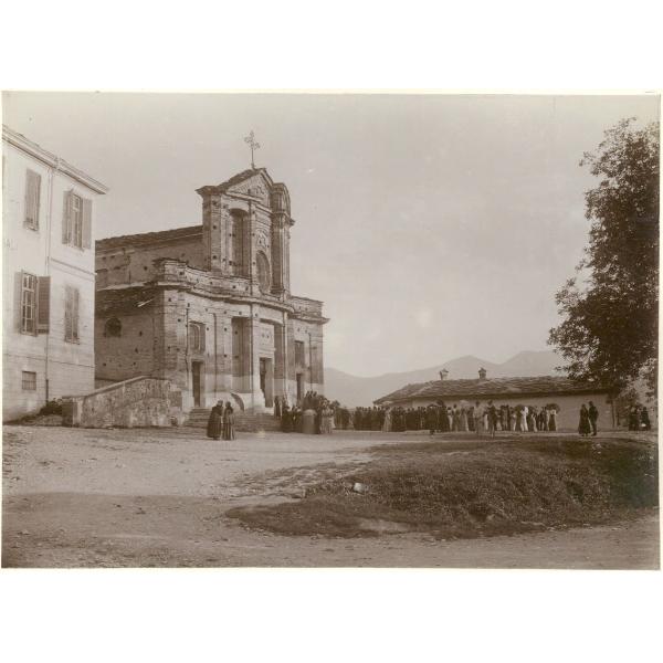 COASSOLO - LA CHIESA. VALLI DI LANZO, COASSOLO, CHIESA DI SAN NICOLAO, VISTA DAL PIAZZALE DURANTE UNA CERIMONIA