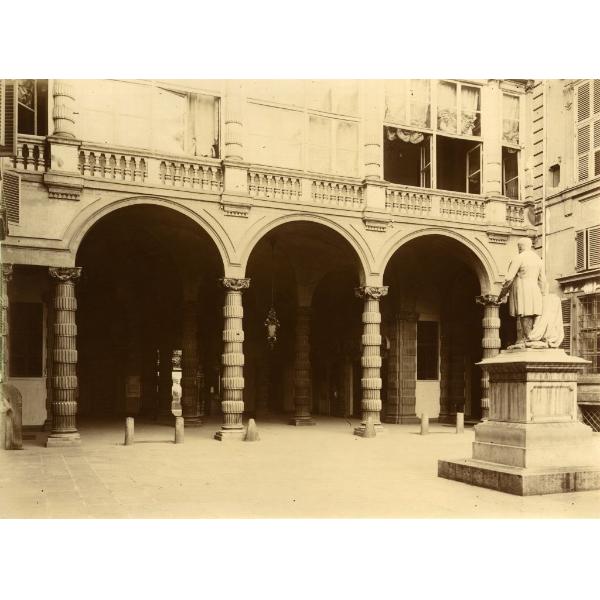 TORINO/ PALAZZO MOROZZO DELLA ROCCA, ORA DISTRUTTO, VISTA DEL CORTILE VERSO L'ATRIO COL MONUMENTO A CAVOUR IN PRIMO PIANO A DESTRA
