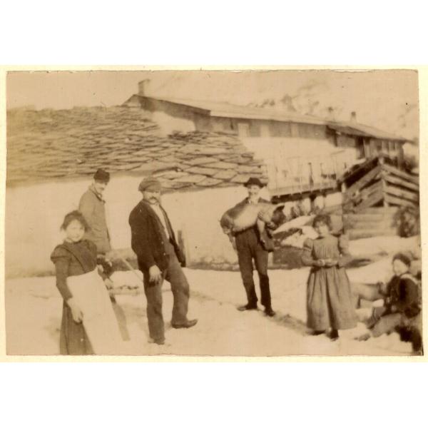 ALLA CIABOTTA DEL PRA . VAL PELLICE, GRUPPO DI VALLIGIANI CON UN MAIALE ALLA CIABOTTA DEL PRA