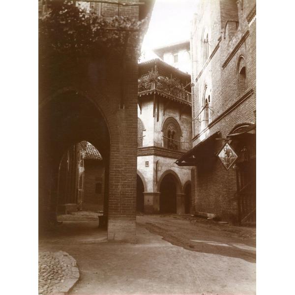 TORINO/ BORGO MEDIEVALE, PIAZZALE, VISTA VERSO NORD CON LE CASE DI AVIGLIANA E DI PINEROLO IN PRIMO PIANO E LA CASA DI CUORGNE' SULLO SFONDO