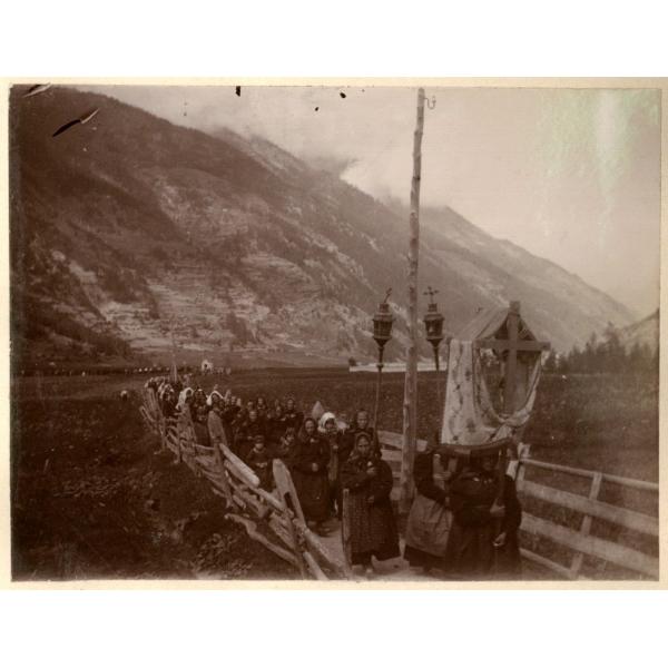 COGNE- PROCESSIONE. VALLE DI COGNE, COGNE, PROCESSIONE CON DONNE CHE PORTANO LA CROCE