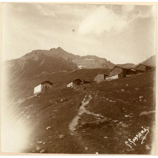 ROCCIAMELONE. VALLE DI SUSA, PAESAGGIO ALPINO COL ROCCIAMELONE SULLO SFONDO ED ALCUNI ALPEGGI IN SECONDO PIANO