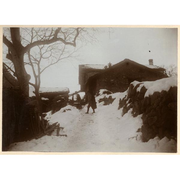 BIONAZ. VALPELLINE, BIONAZ, VEDUTA INVERNALE CON UNA VIA DEL PAESE