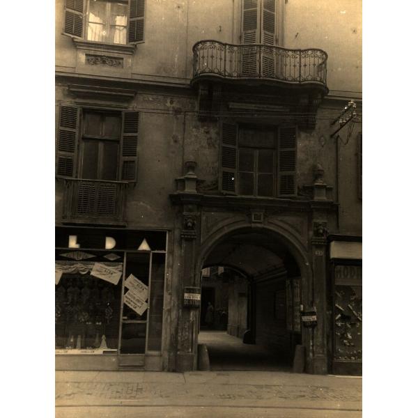 TORINO/ PALAZZO AL CIVICO N.25, VIA GARIBALDI?, PROSPETTO, PARTICOLARE CON IL PORTALE E L'ANDRONE CARRAIO VISTO DI SCORCIO