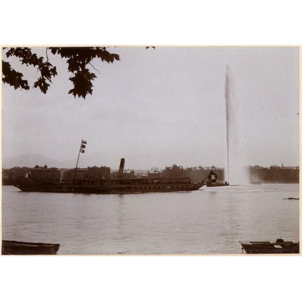LAGO LEMANO, GINEVRA, IL TRAGHETTO LEMAN IN NAVIGAZIONE COL GETTO DELLA FONTANA IN SECONDO PIANO
