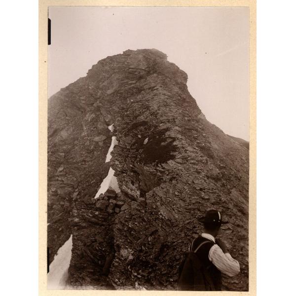 VALLE DI SUSA, MONTAGNA NON IDENTIFICATA (MONTE ORSIERA?), CON UN ESCURSIONISTA IN PRIMO PIANO
