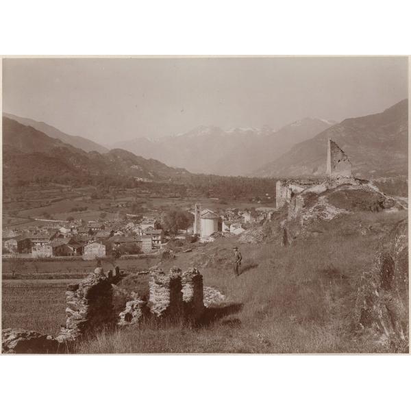 S.GIORIO, LA VALLE DI SUSA, E RUDERI DEL CASTELLO. VALLE DI SUSA, PANORAMA DELLA VALLE VERSO OVEST DAL COLLE DI SAN GIORIO COI RUDERI DEL CASTELLO IN PRIMO PIANO