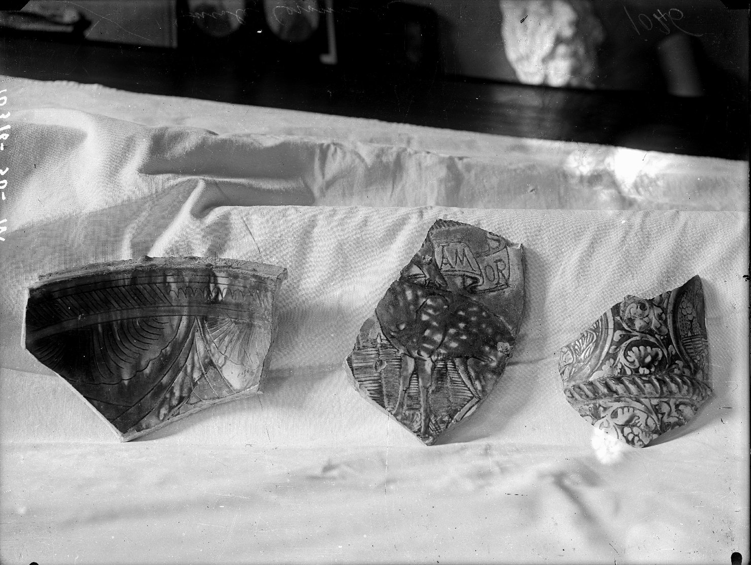 Mantova - Ceramiche - Allestimenti, Mantova - Palazzo Ducale - Collezione di ceramiche - Frammenti di piatti in terracotta invetriata