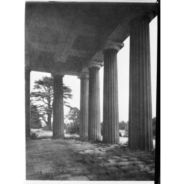 Northington - Grange park - veduta, Ripresa da monografia (J. Mordaunt Crook, "Greek revival", London 1972) di un dettaglio del pronao di uno degli edifici neodorici costruiti su progetto dell'architetto William Wilkins a Grange Park, Northington. Wilkins è autore tra l'altro del volume Antiquities of Magna Graecia (1807)