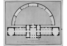 Haga - scuderia - pianta, Ripresa da monografia di un progetto dell'architetto Jean Louis Desprez, raffigurante la pianta di una scuderia ad Haga; il progetto originario è conservato a Stoccolma, Bibliothéque Royale