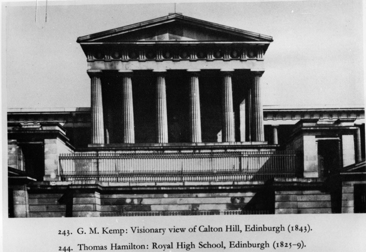 Edimburgo - Royal High School - veduta, Ripresa da monografia di una veduta frontale della Royal High School di Edimburgo, progettata dall'architetto Thomas Hamilton e costruita nel 1825/1829