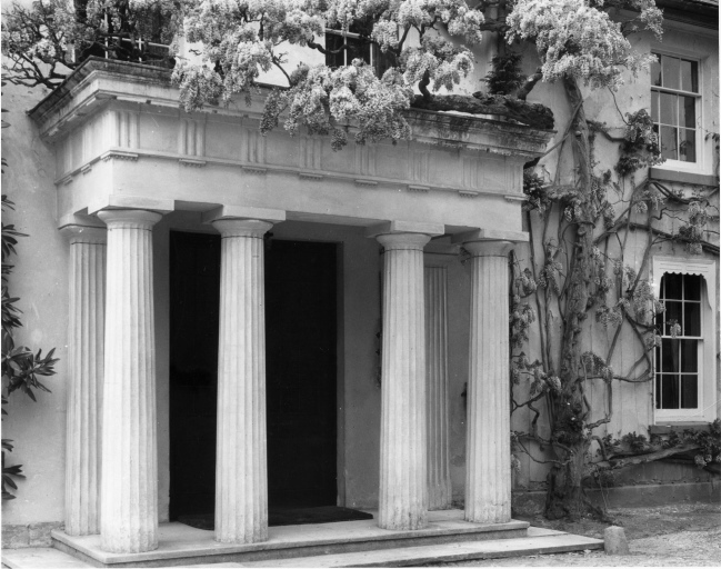 Dawlish - Stonelands park - veduta, Veduta del pronao dell'edificio di Stoneland park a Dawlish, nel Devonshire, opera dell'architetto J. Nash nel 1825 ca