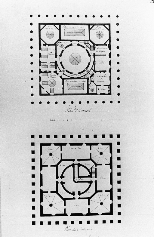 Palazzo - progetto - pianta, Ripresa di un progetto di Giacomo Quarenghi, raffigurante un progetto (pianta del mezzanino e del sotterraneo) per un Palazzo