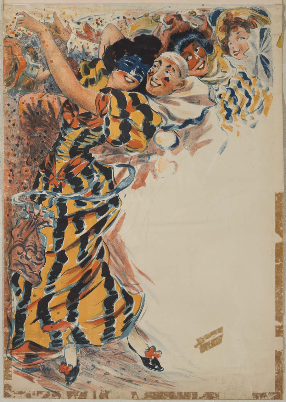 Lettura iconografica: figure femminili in maschera; figura maschile in maschera; coriandoli. Categoria merceologica/ tipo evento: tempo libero; feste; festa di carnevale