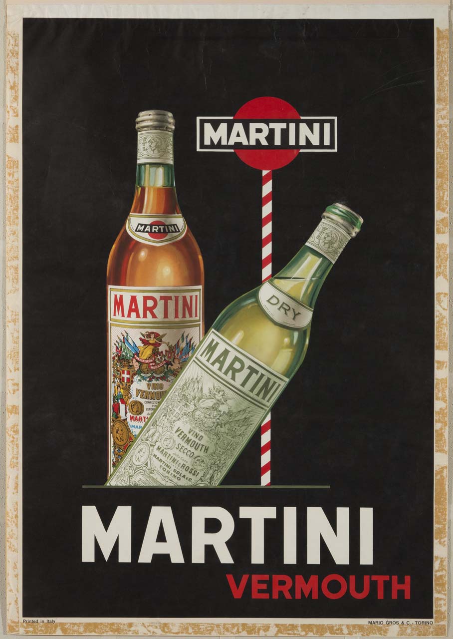 Lettura iconografica: bottiglia rossa; bottiglia verde; cartello segnaletico. Categoria merceologica/ tipo evento: industria alimentare; bevande; vini speciali; vermut. Nomi: Martini Vermouth; Vino Vermouth Secco; Martini e Rossi; Martini Sola C.; Leopold II. Luoghi: Torino; Alessandria; Francia; Parigi; Belgio; Anversa; Stati Uniti; Filadelfia