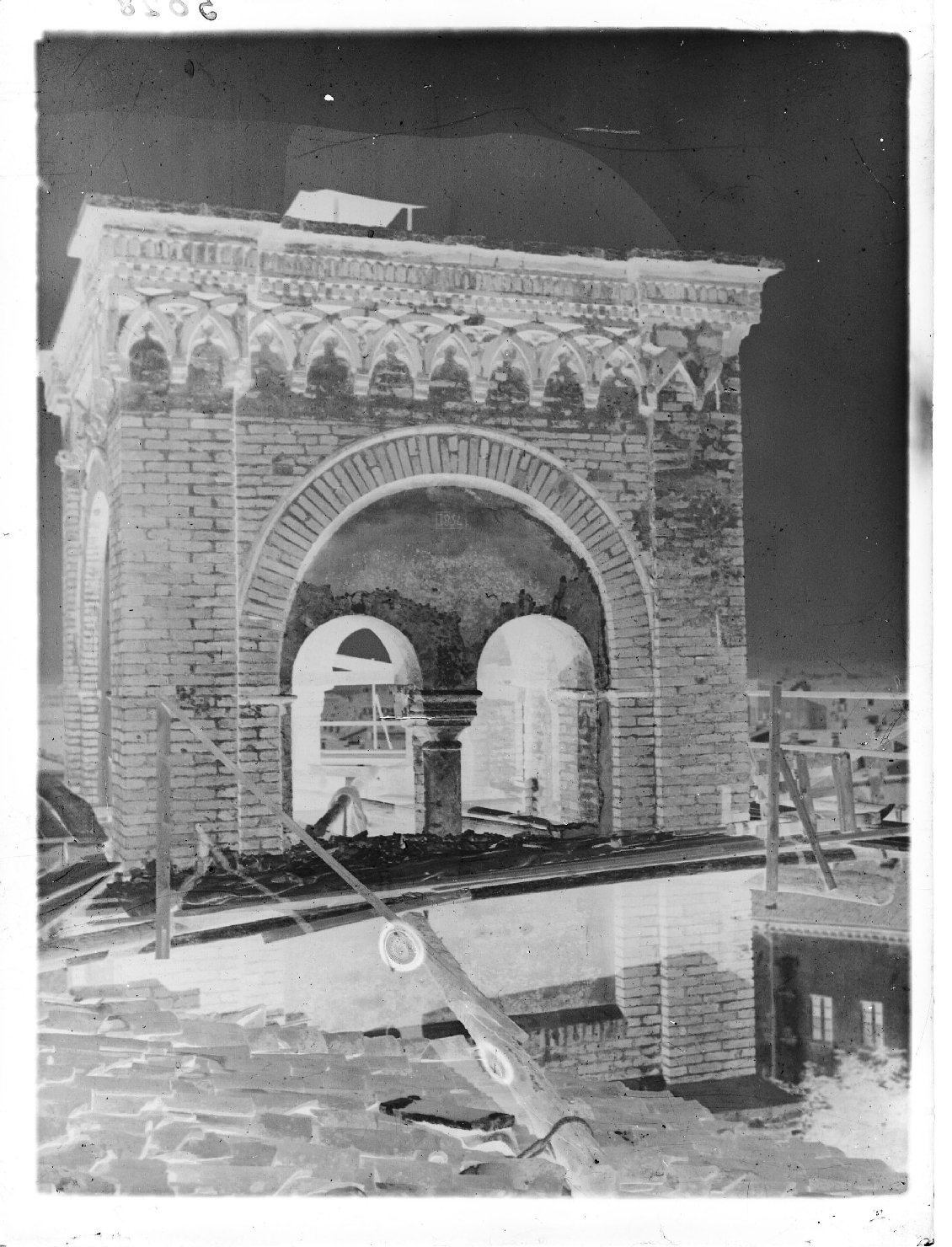 Lombardia - Mantova - Chiesa di S. Maria della Carità; Architettura religiosa - Chiese - Elementi architettonici - Campanili - Restauri, Mantova - Chiesa di S. Maria della Carità - dettaglio del campanile durante lavori di ripristino