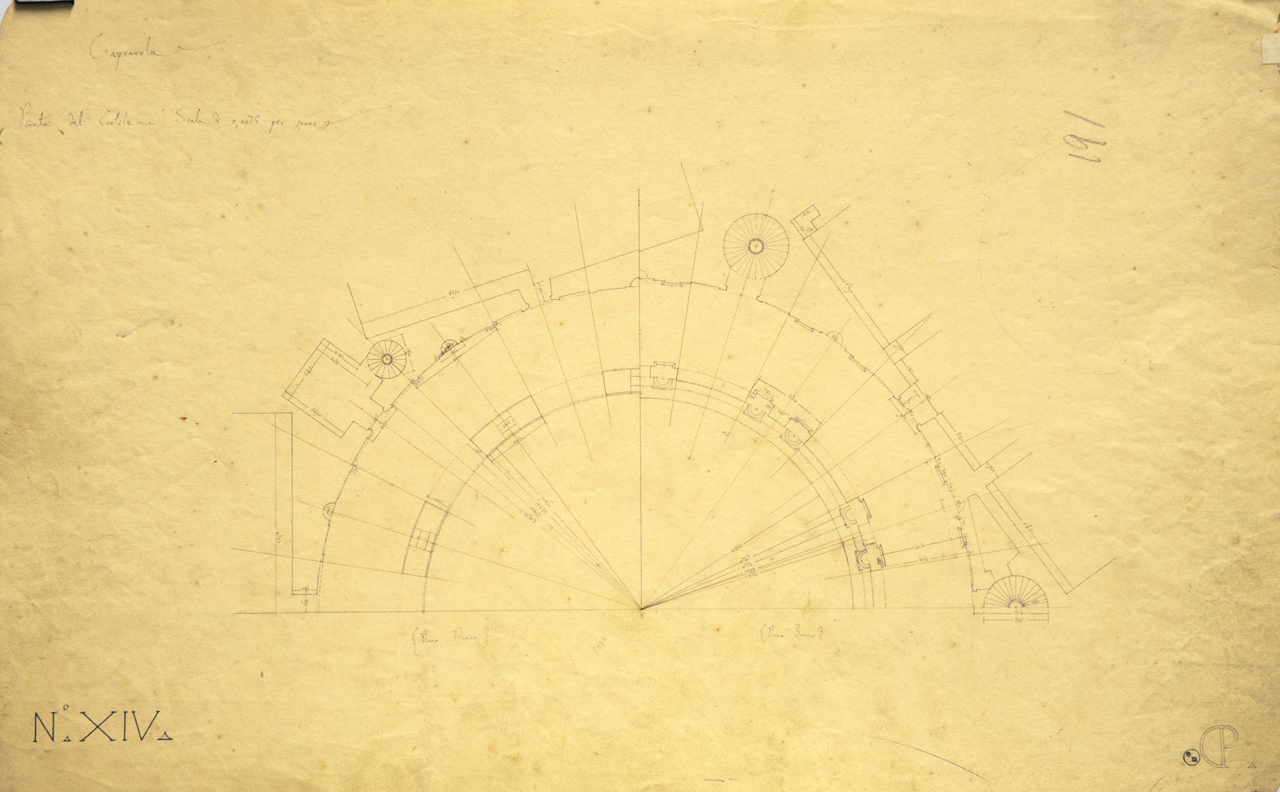 Caprarola Facciata. Pianta del Cortile, Cortile di palazzo Farnese: pianta quotata di parte del piano terreno e del primo piano (disegno architettonico)