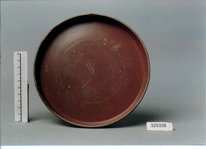 ORLO DISTINTO DA UNA SOTTILE SCANALATURA, PARETE LIEVEMENTE CONVESSA, FONDO PIATTO DECORATO ALL'INTERNO DA DUE SOTTILI ANELLI CONCENTRICI