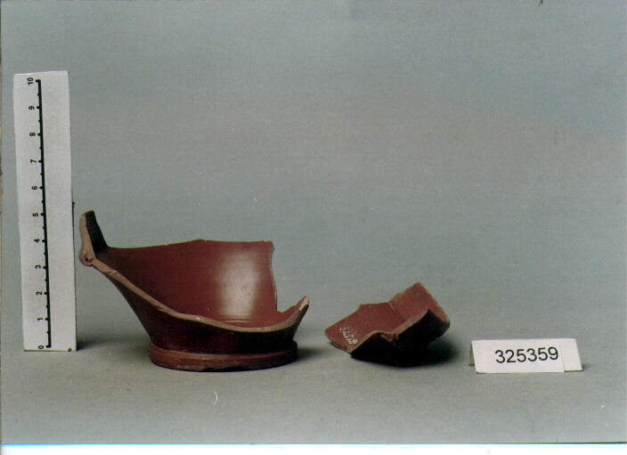 ORLO CONCAVO, SUPERIORMENTE RASTREMATO, INFERIORMENTE INGROSSATO, VASCA TRONCOCONICA, PIEDE AD ANELLO. VERNICE LUCIDA