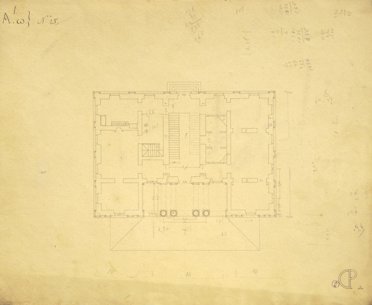 Sul verso istruzioni all'allievo per l'esecuzione grafica.. Architetture: Edificio civile: Pianta