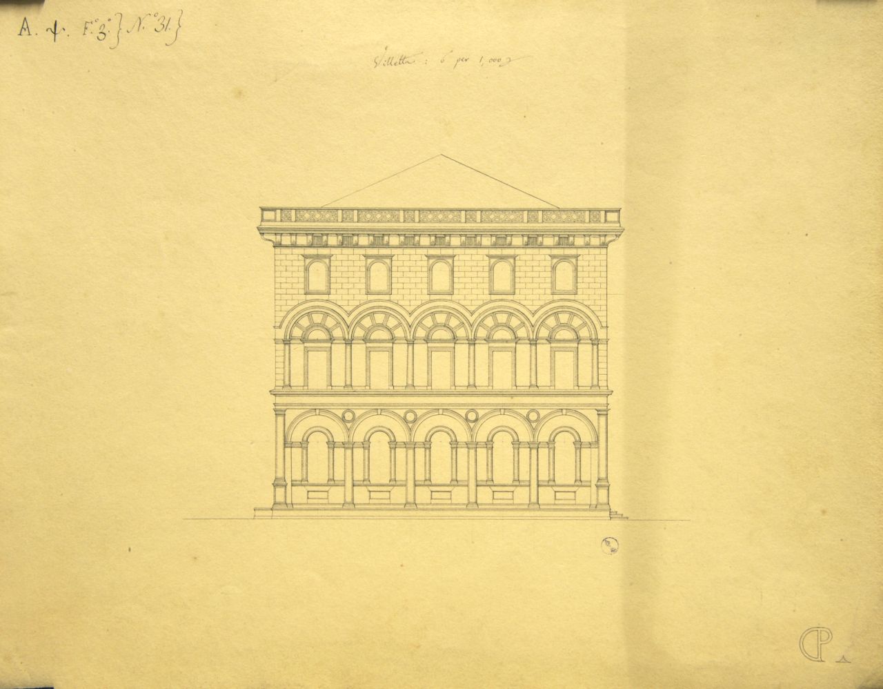 Sul verso istruzioni all'allievo per l'esecuzione grafica.. Architetture: Edificio civile: Prospetto