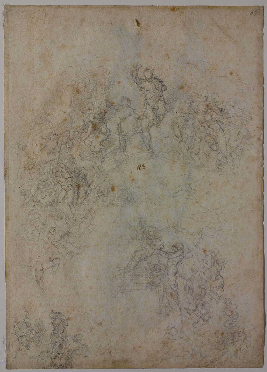 Sul recto è presento lo studio per Giudizio finale; sul verso lo studio per un Cristo risorto.. Figure. Nudi maschili