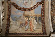 Nel dipinto Maria Vergine e Sant’Elisabetta sono raffigurate al momento del loro incontro, quasi a figura intera.. Personaggi: Maria Vergine, Santa Elisabetta. Abbigliamento: veste e manto