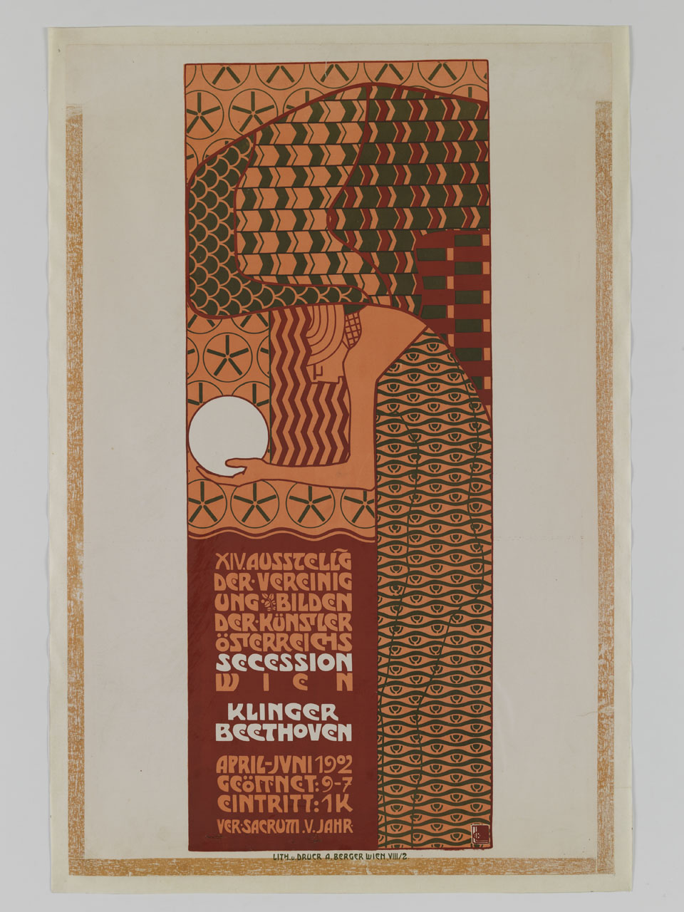 Lettura iconografica: figura femminile alata; figura allegorica; Fortuna; sfera; motivi decorativi. Categoria merceologica/ tipo evento: manifestazioni culturali; esposizioni; esposizione d'arte; associazioni culturali; informazione e comunicazione; editoria; periodico mensile; cultura; arte. Nomi: XIV Ausstellung der Vereinigung Bildender Künstler Österreichs; Secession; Max Klinger; Beethoven; Ver Sacrum. Luoghi: Austria; Vienna