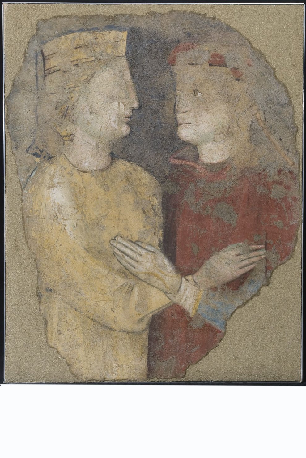 Frammento d'affresco staccato e trasportato su tela.. Figure: due figure che si abbracciano (?)