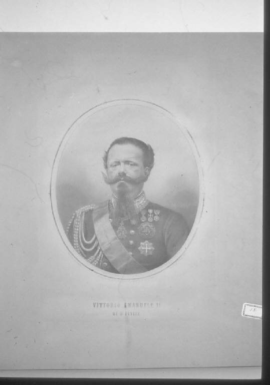 RITRATTI: VITTORIO EMANUELE II. ABBIGLIAMENTO: UNIFORME; DECORAZIONI DELL'ORDINE DEI SANTI MAURIZIO E LAZZARO; COLLARE DELL'ORDINE PIANO; MEDAGLIE