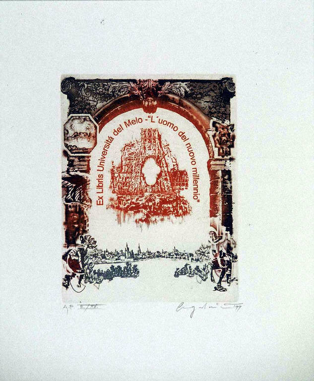Veduta di citta' e arco (ex libris)