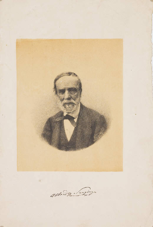 Personaggi: Sangiorgio Abbondio. Ritratti: busto-ritratto; baffi; barba. Abbigliamento: cravatta; giacca; camicia