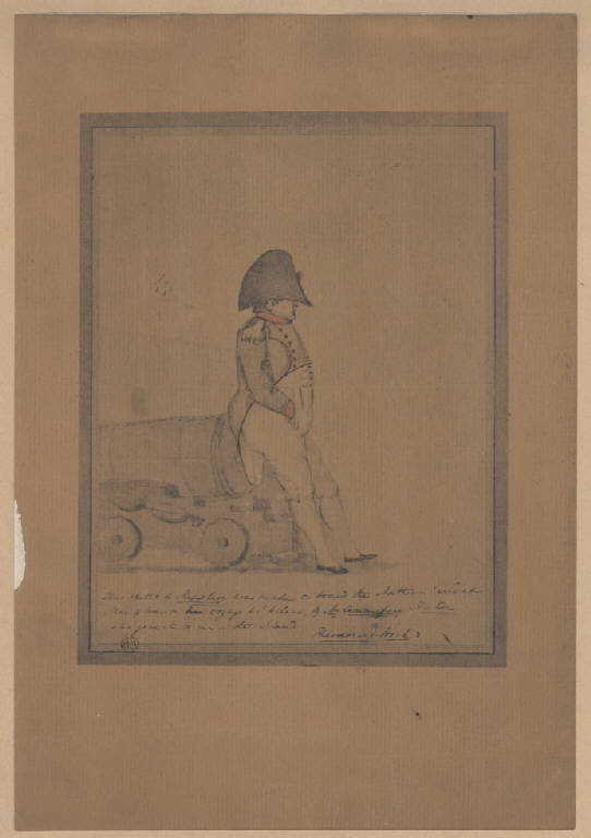 Ritratti: Napoleone Bonaparte. Abbigliamento: uniforme, cappello. Oggetti: cannone. Ambientazione: nave Northumberland