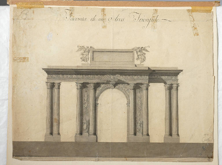 Facciata di un arco di trionfo, Architetture (disegno, opera isolata)