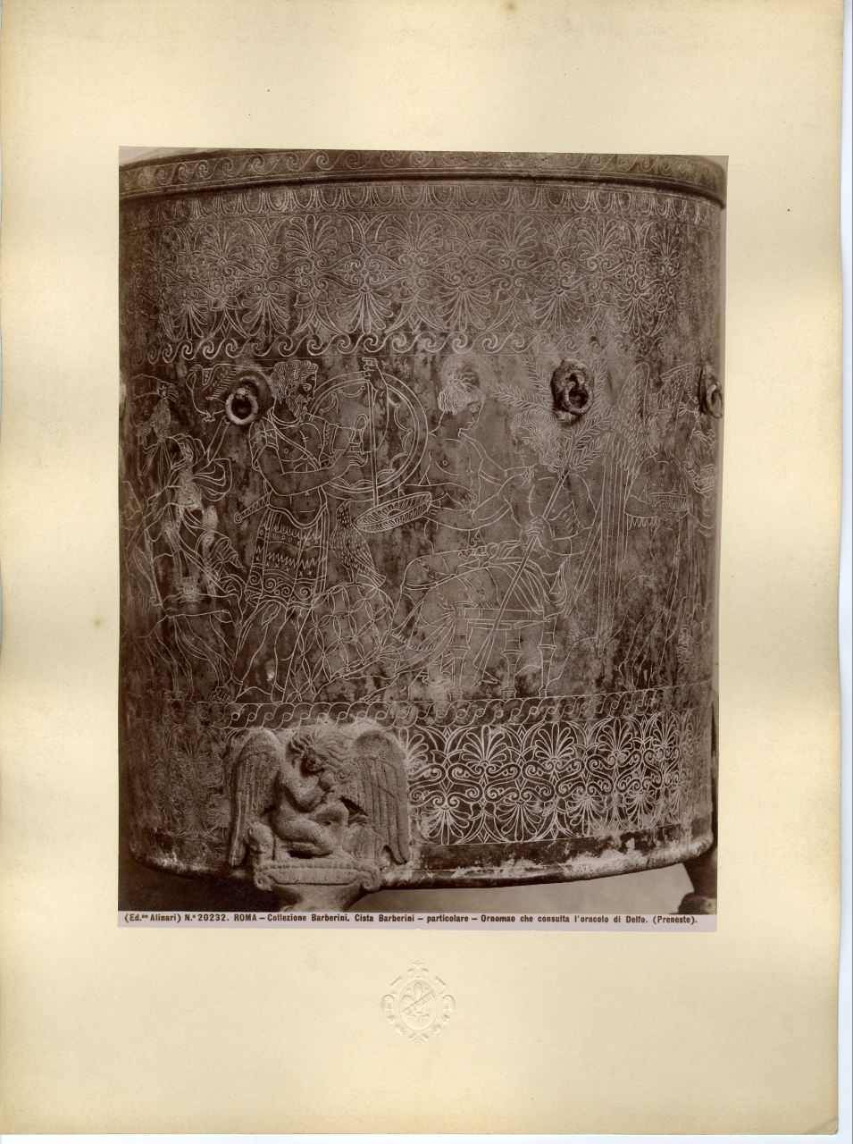 L'oggetto fa parte di una serie di 28 fotografie, 27 delle quali acquistate da Volpi. Nell'Archivio fotografico del Museo sono conservate 6 fotografie, mentre le altre 21 si trovano nella Fototeca del KHI. Gli oggetti raffigurati appartenevano alla Collezione Barberini; Volpi li acquistò dalla famiglia Barberini verso il 1906 e li vendé allo Stato Italiano nel 1908