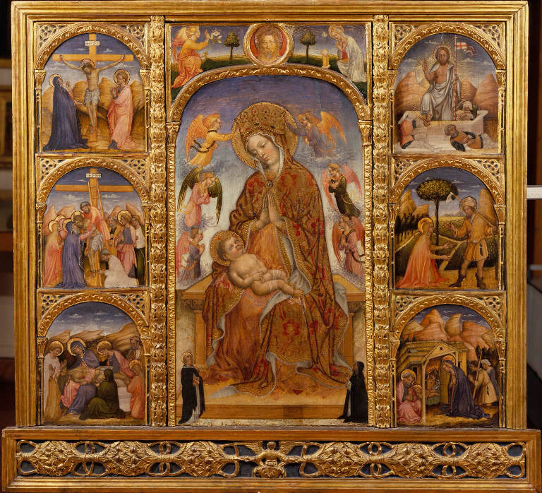Madonna con Bambino in trono tra angeli e santi (scomparto di polittico, elemento d'insieme)