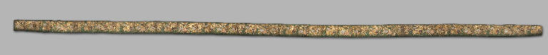 Cintura femminile (obi) a fondo verde, disegni a oro di fiori di pruno (ume) alternati a crisantemi (kiku) e peonie (botan) disposti su emblemi augurali (takara zukushi).. Elementi decorativi: fiori. Elementi decorativi: emblemi augurali