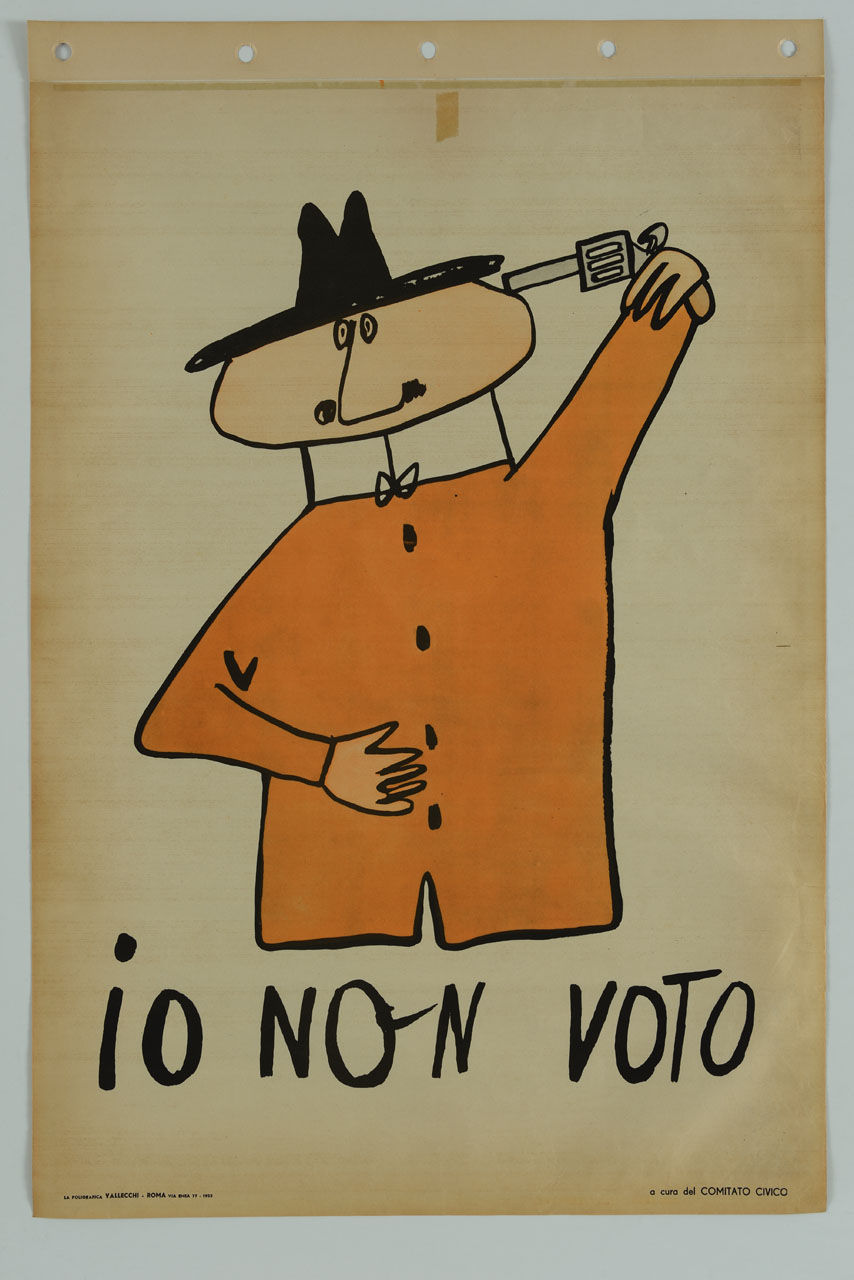 Lettura iconografica: figura maschile; cappello; pistola. Categoria merceologica/ tipo evento: politica; movimenti politici; informazione e comunicazione; propaganda politica; propaganda elettorale. Nomi: Comitato Civico