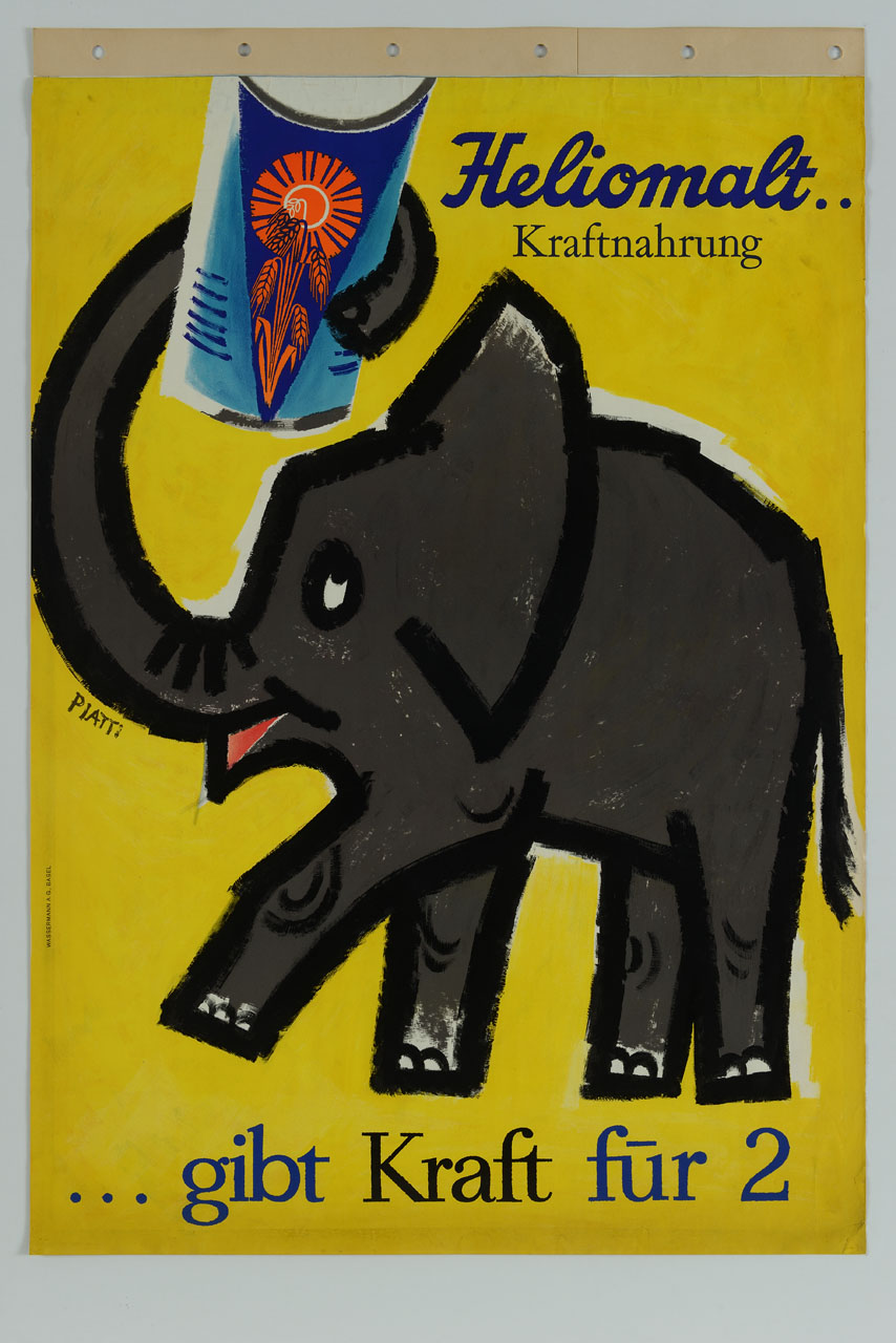Lettura iconografica: animale; elefante; barattolo. Categoria merceologica/ tipo evento: industria alimentare; maltosio; preparati per bevande. Nomi: Heliomalt; Heliomalt AG. Luoghi: Svizzera; Berna; Grafenried