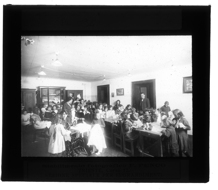 Scuola; Fanciulli; Alunni; Insegnanti; Aula scolastica; Banco scolastico; Edifici scolastici; Didattica; Istruzione; Scuole femminili; Donna - Istruzione (diapositiva)